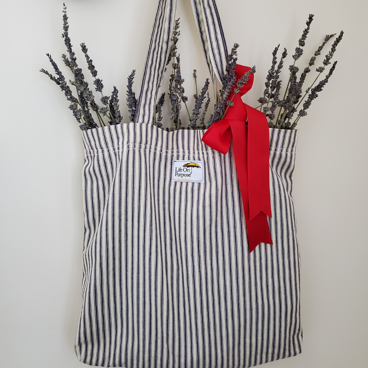 This beautiful tri-color bag is sturdy and stylish for work, school, or fun. Made with eco-friendly cotton and webbed handles for carrying comfort.